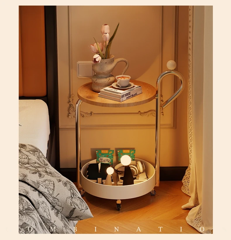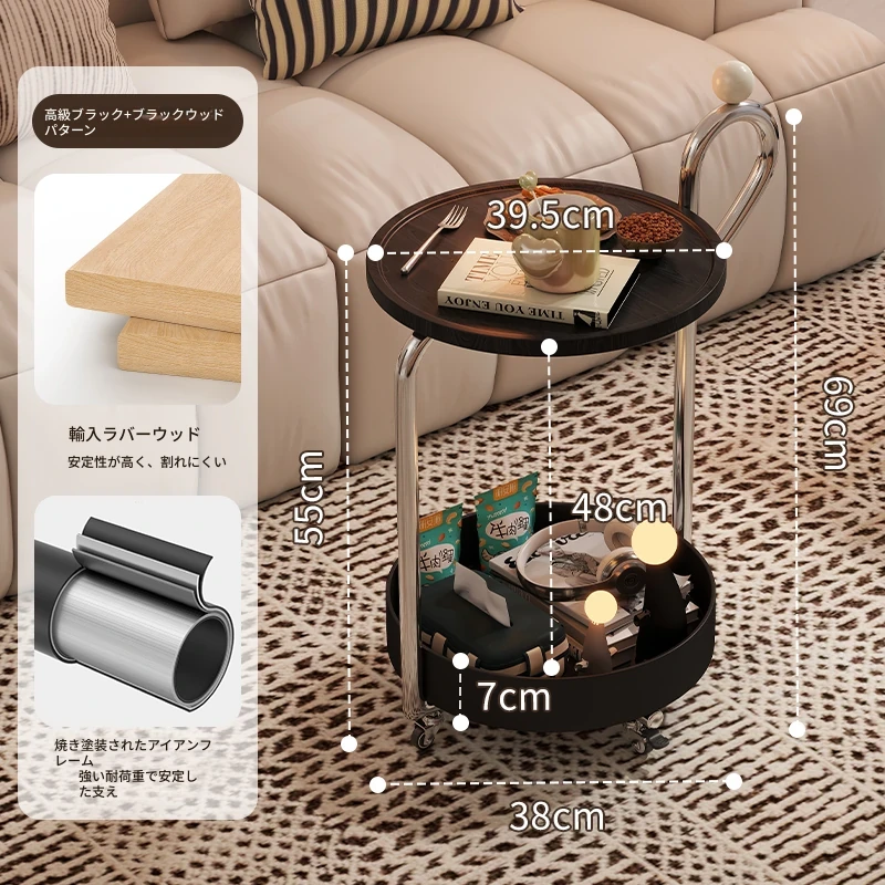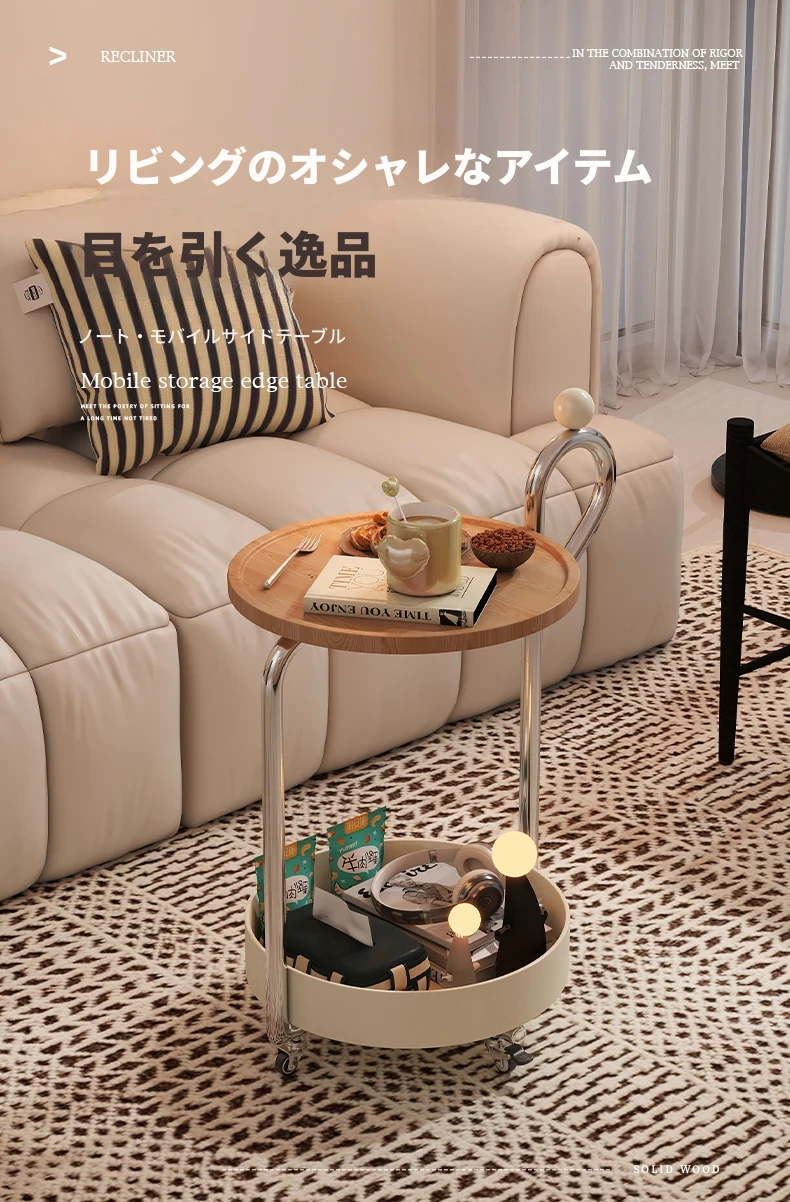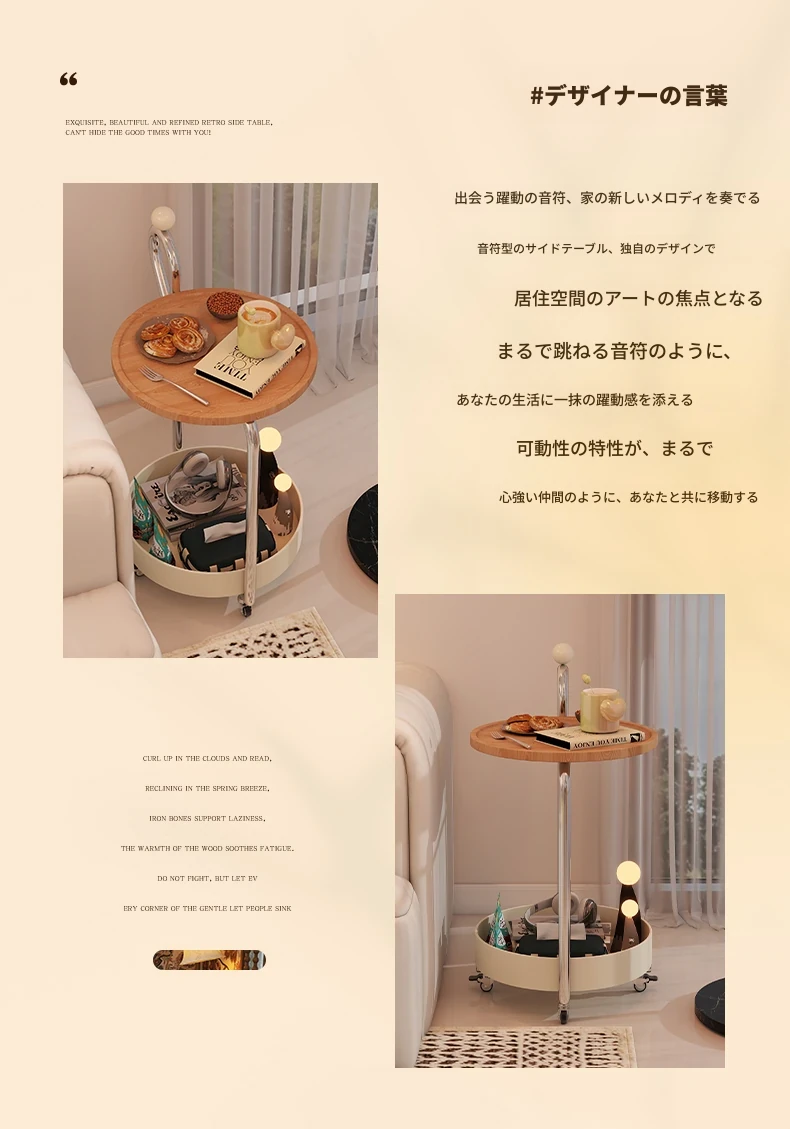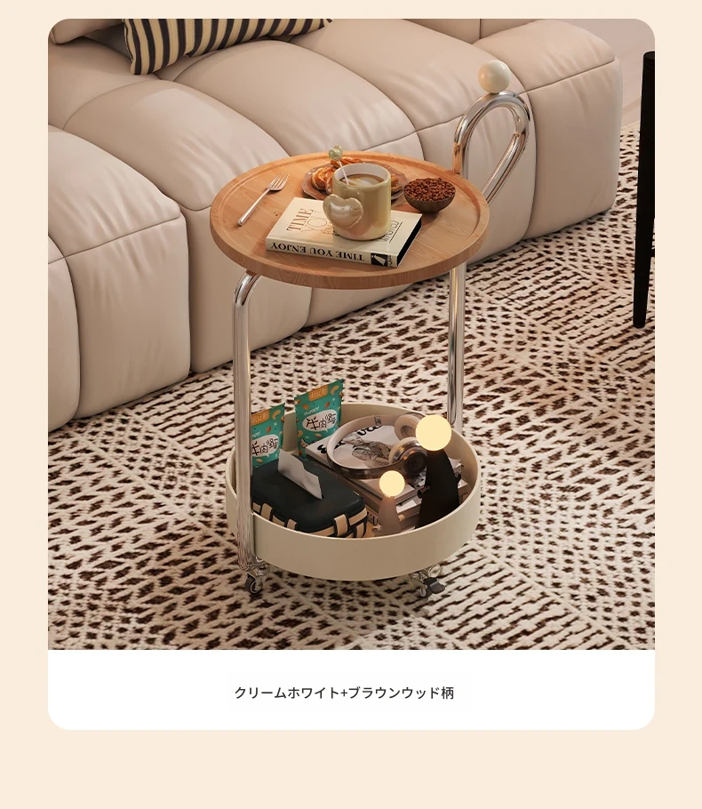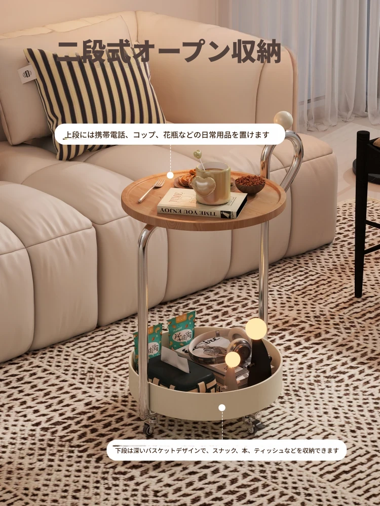 中古スタイルの移動可能なサイドテーブル、リビングにぴったりの軽奢な高級感!小型住宅にも最適なキャスター付きクリエイティブ収納ラック。おしゃれで機能的な空間を演出します!