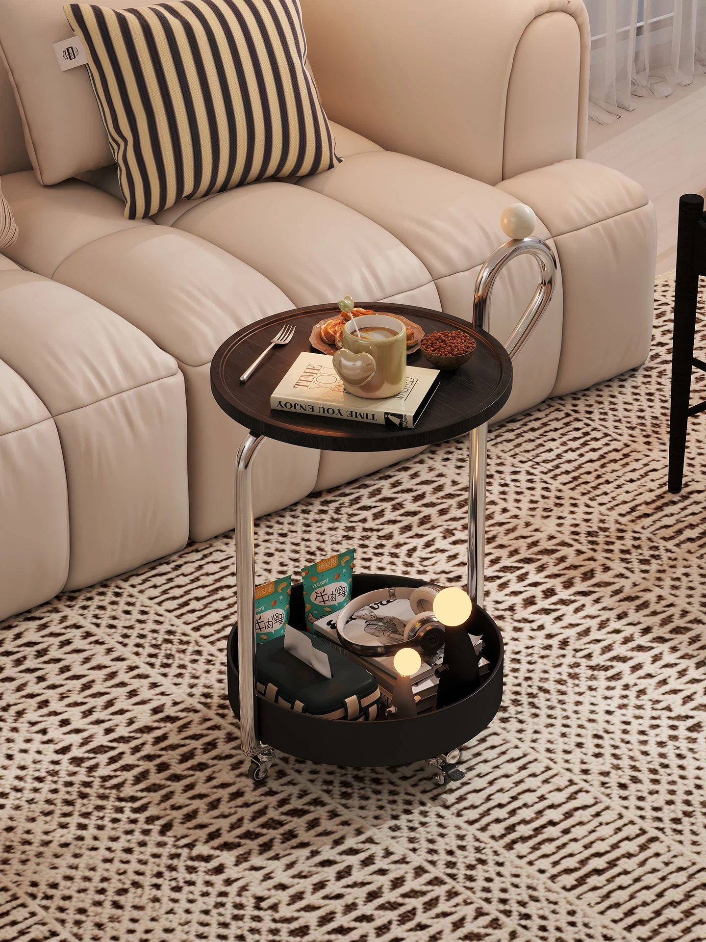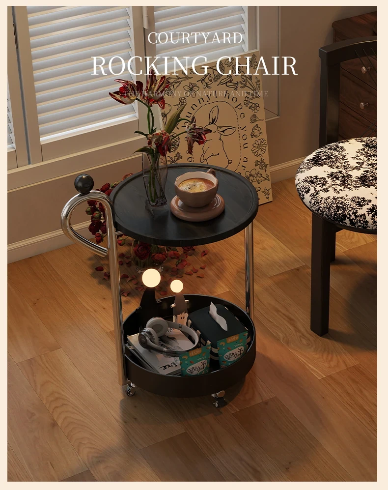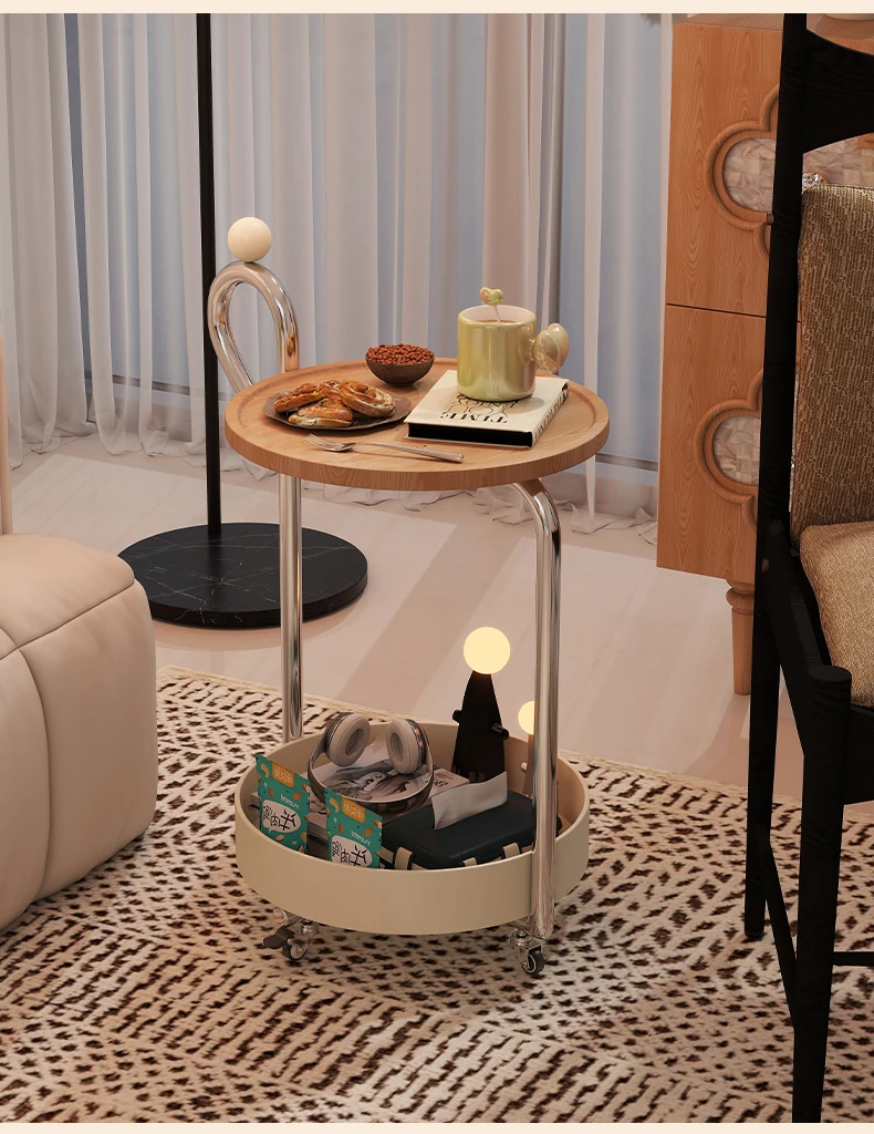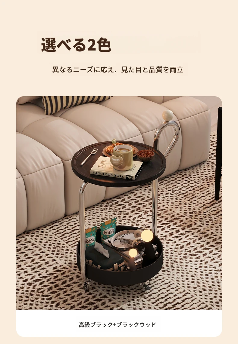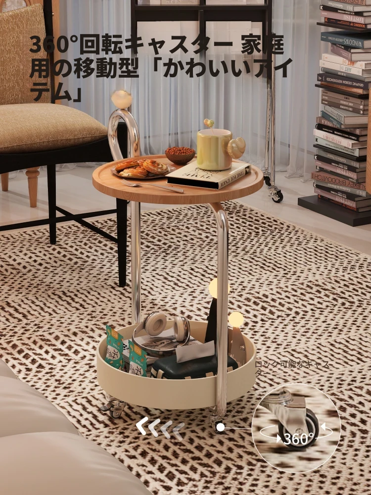 中古スタイルの移動可能なサイドテーブル、リビングにぴったりの軽奢な高級感!小型住宅にも最適なキャスター付きクリエイティブ収納ラック。おしゃれで機能的な空間を演出します!