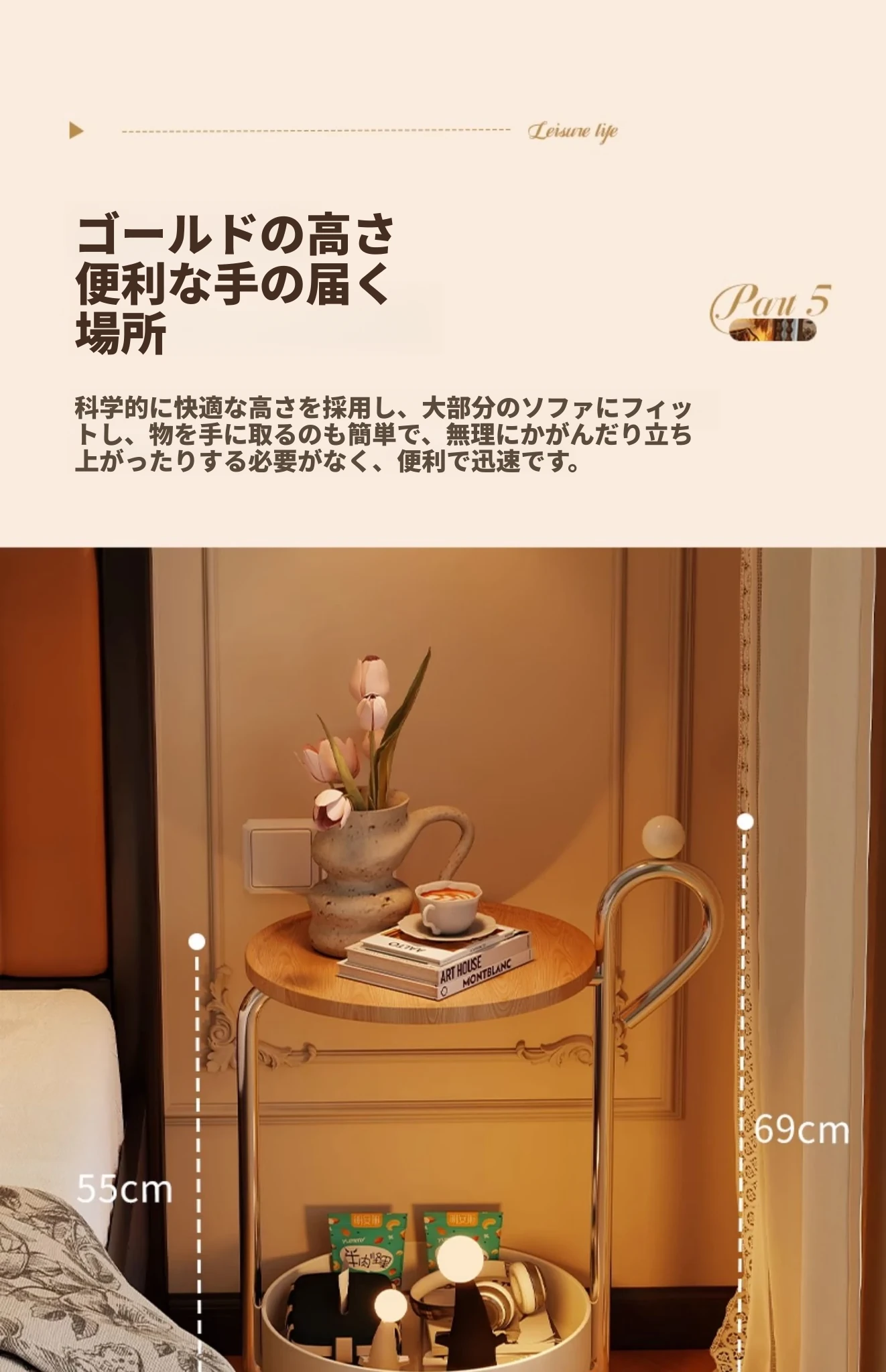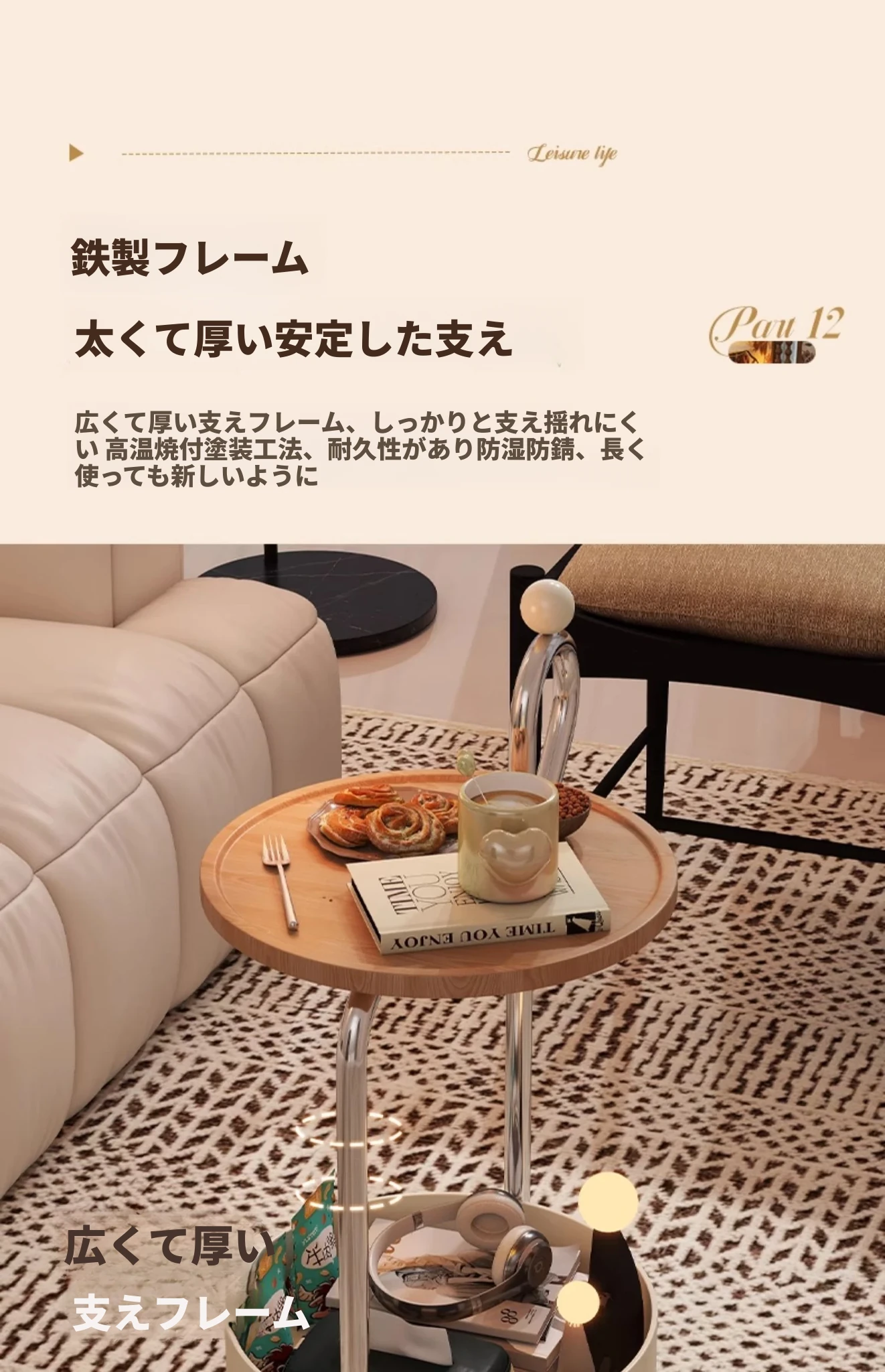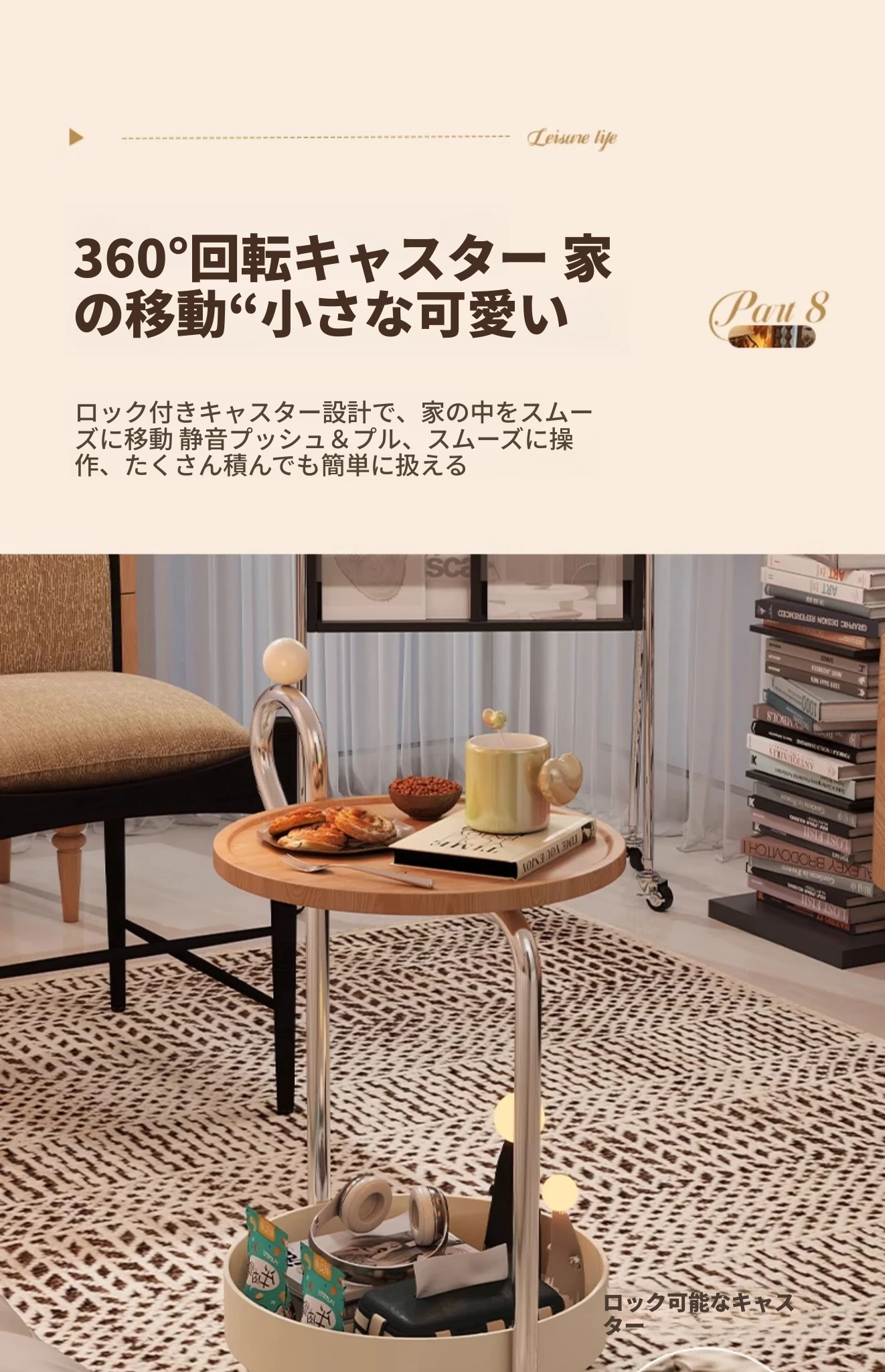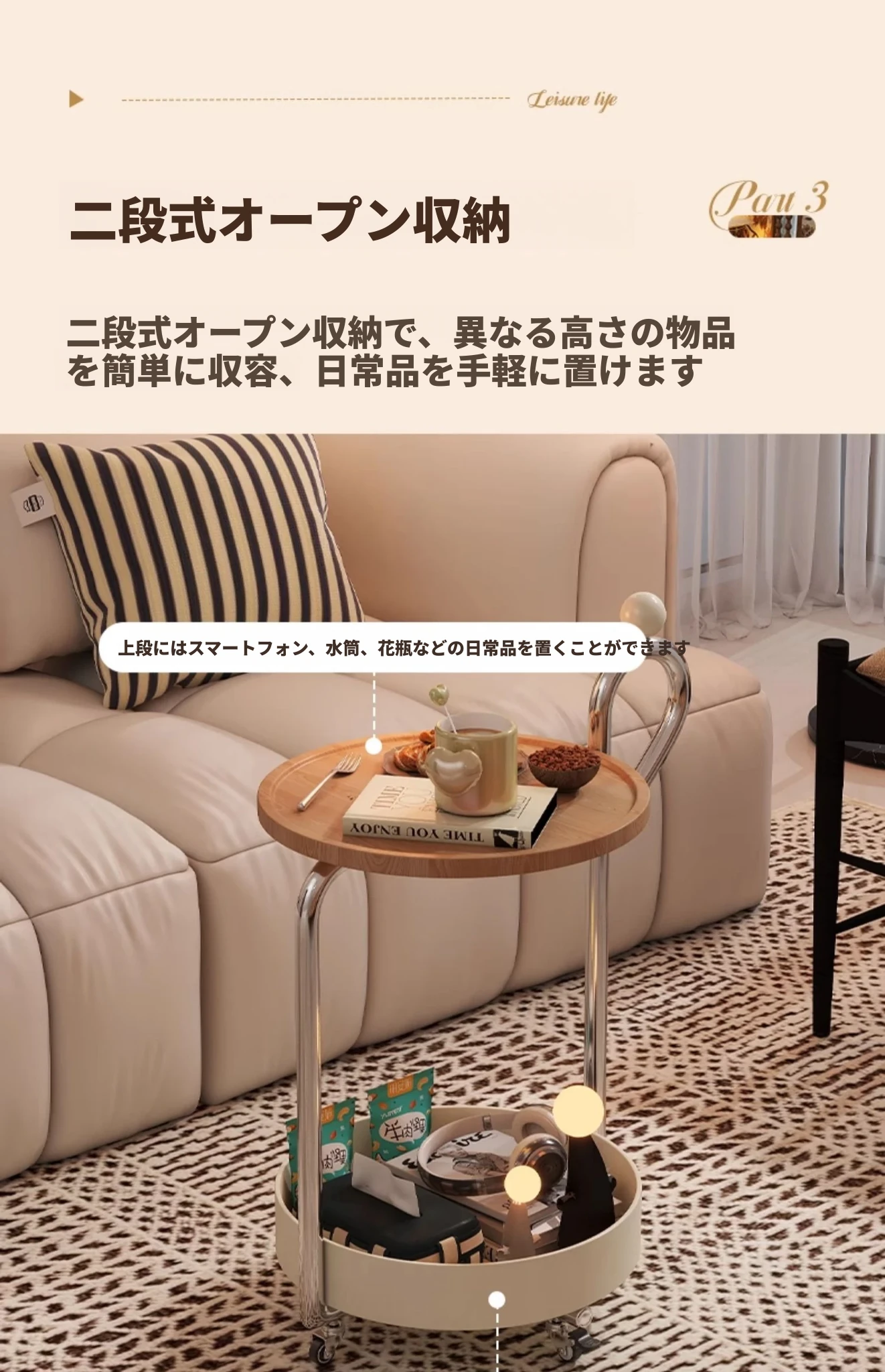 中古スタイルの移動可能なサイドテーブル、リビングにぴったりの軽奢な高級感!小型住宅にも最適なキャスター付きクリエイティブ収納ラック。おしゃれで機能的な空間を演出します!