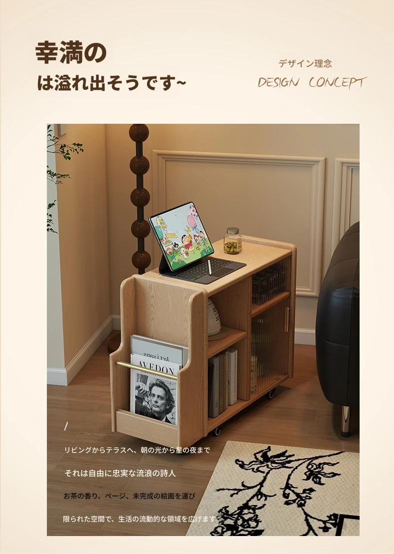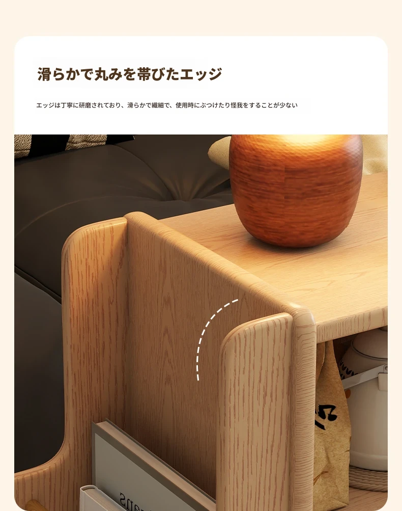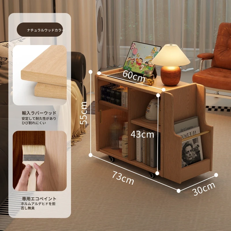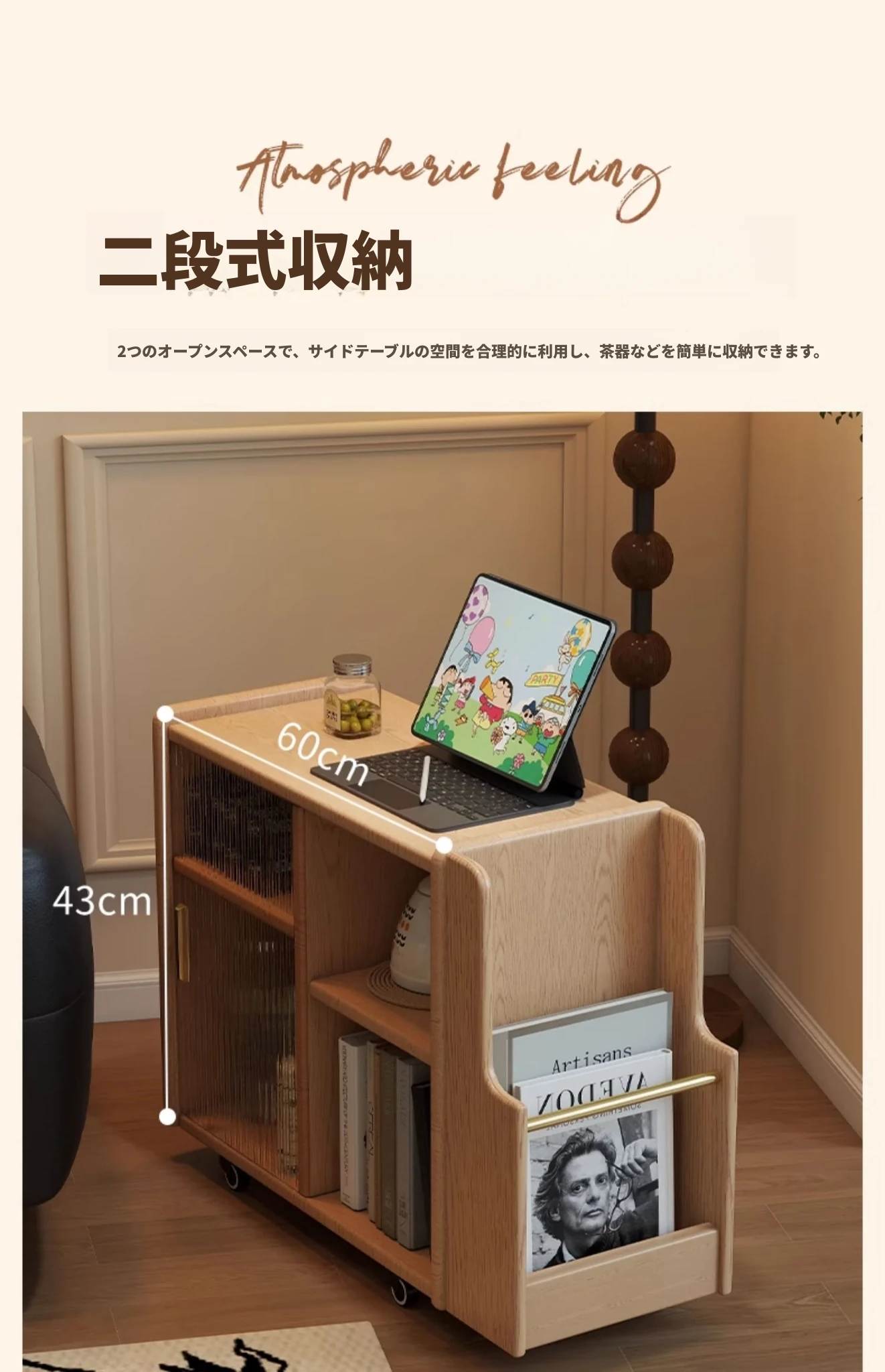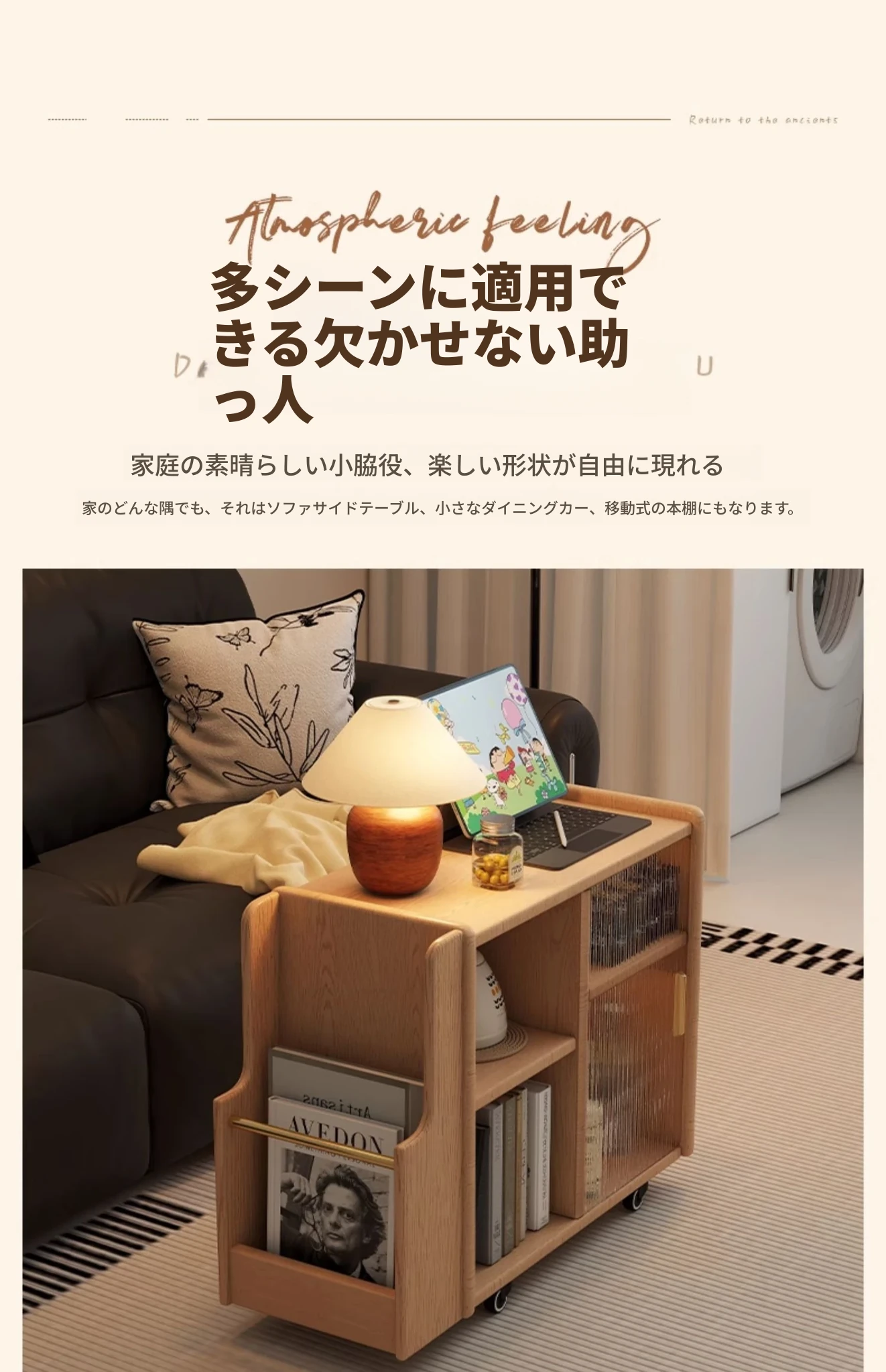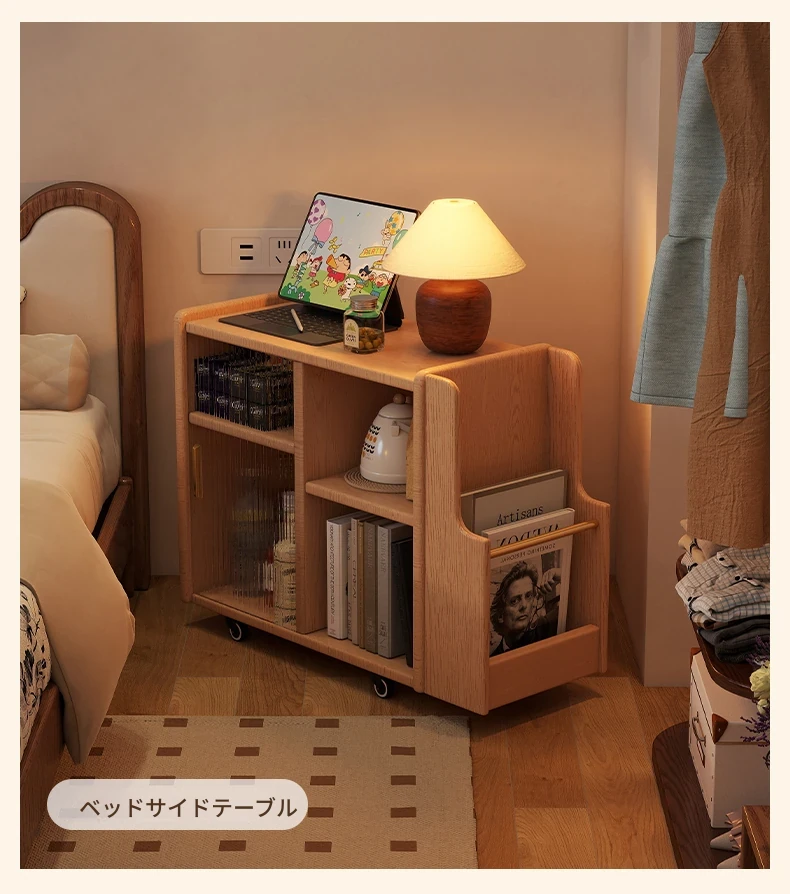 移動可能な北欧スタイルの無垢材サイドテーブル - 家庭用の収納力抜群なおしゃれなスナックラック兼コーヒーテーブル。リビングルームをスタイリッシュに演出!