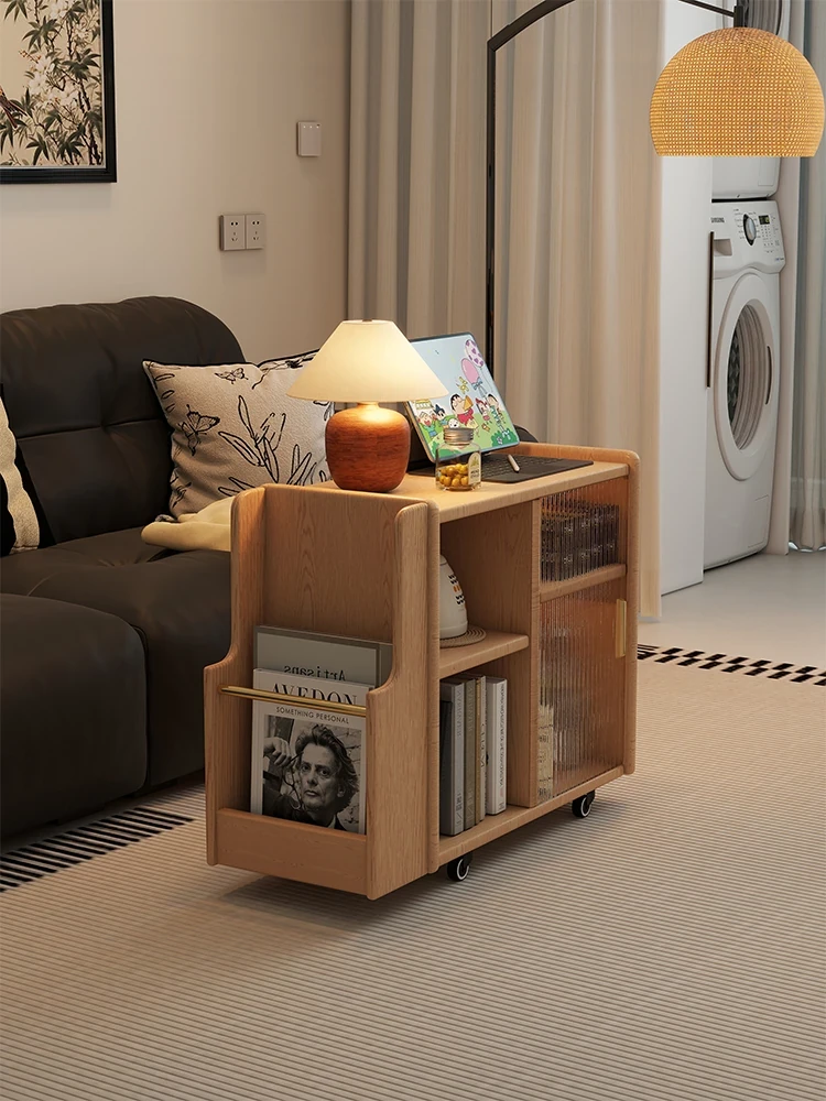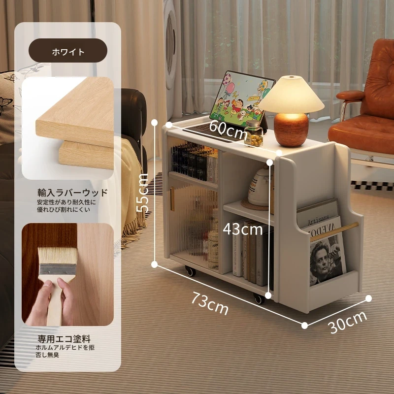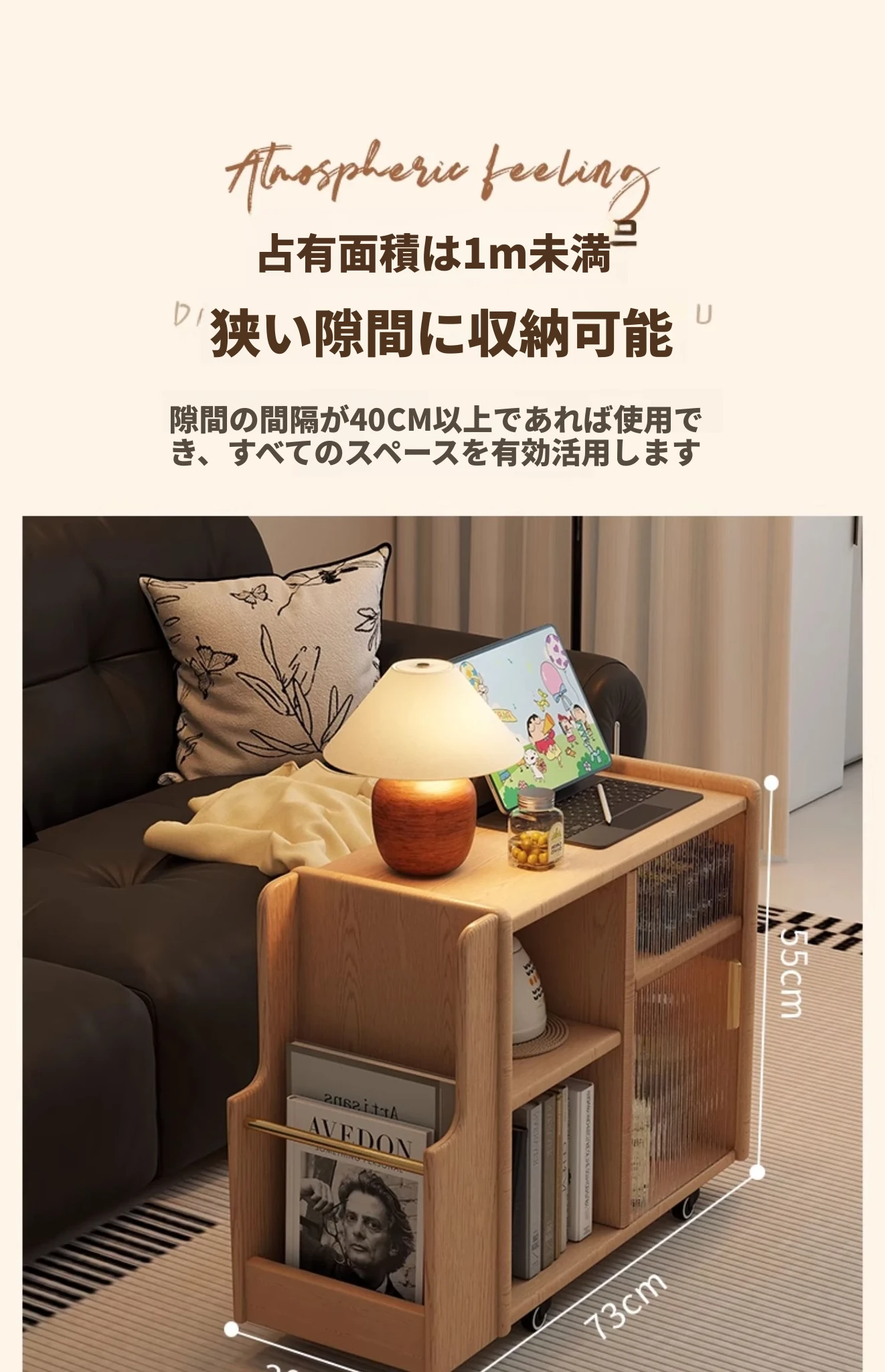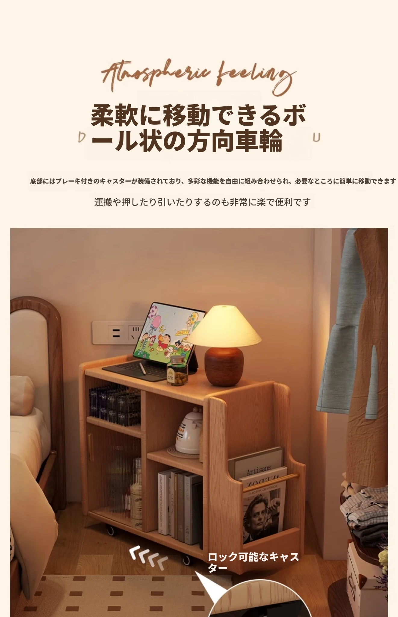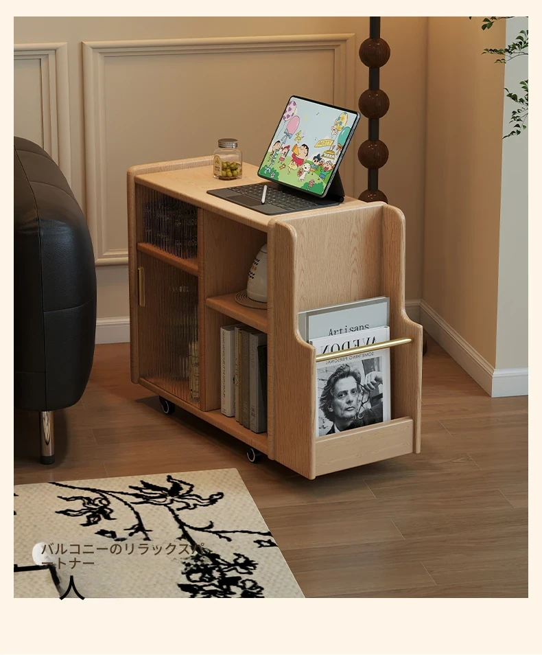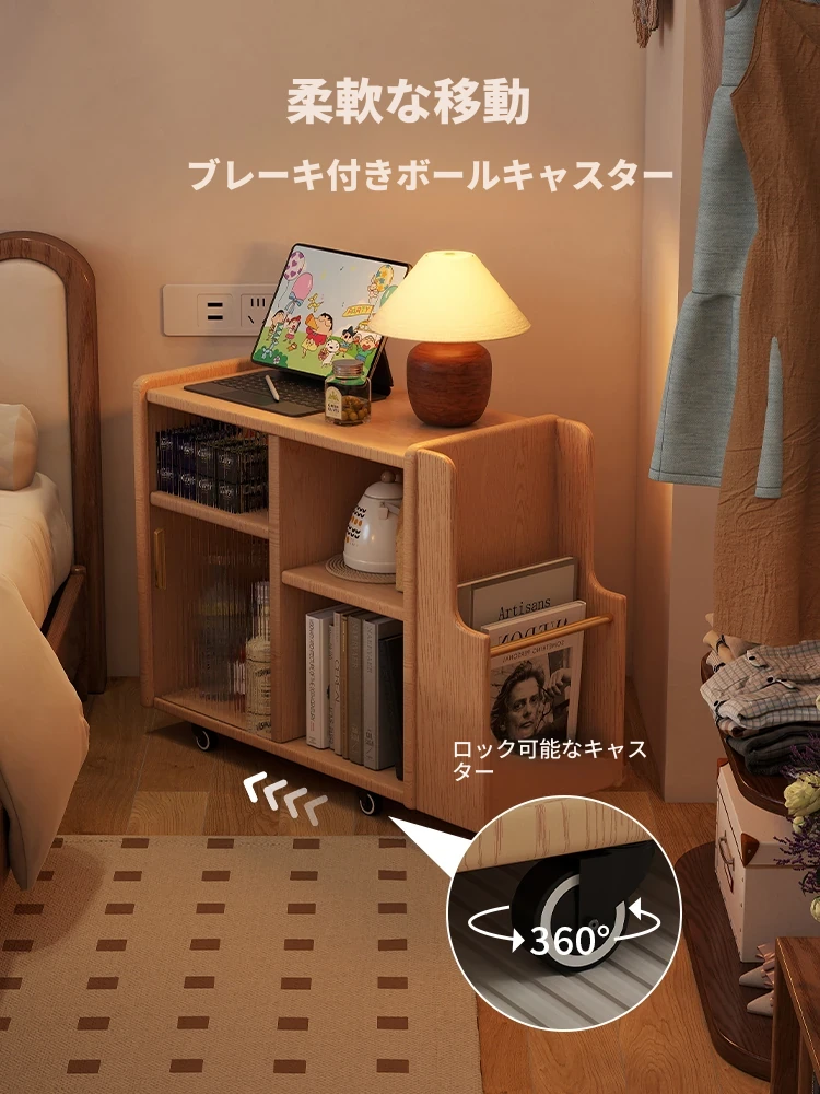 移動可能な北欧スタイルの無垢材サイドテーブル - 家庭用の収納力抜群なおしゃれなスナックラック兼コーヒーテーブル。リビングルームをスタイリッシュに演出!