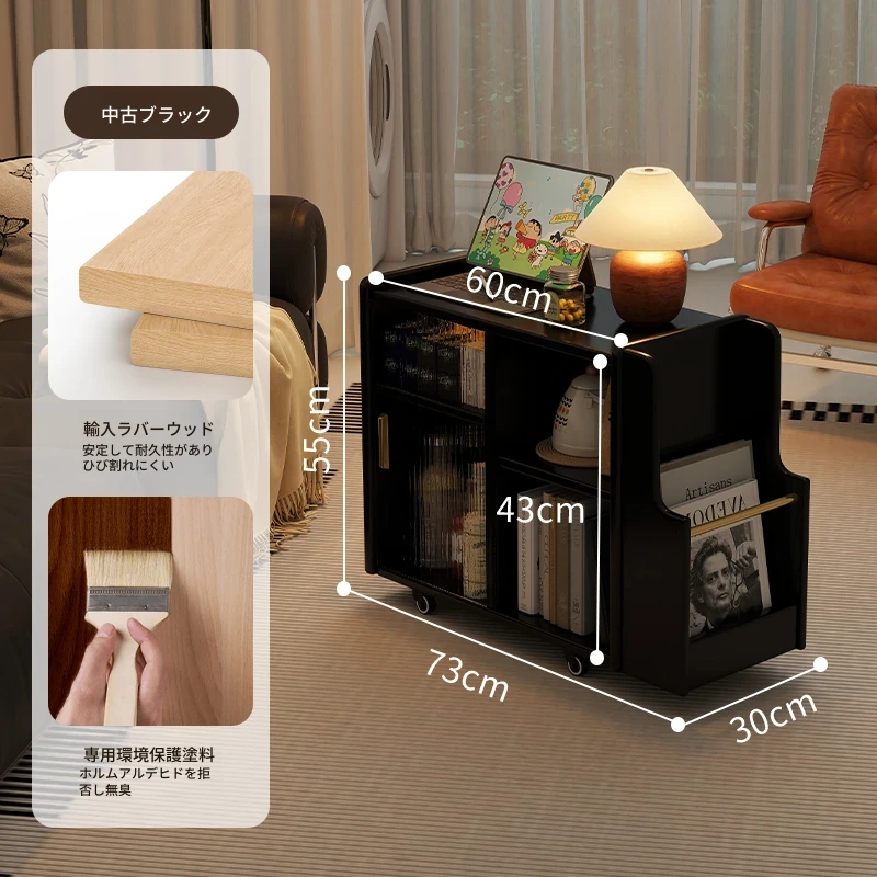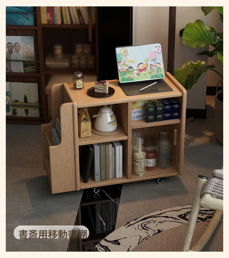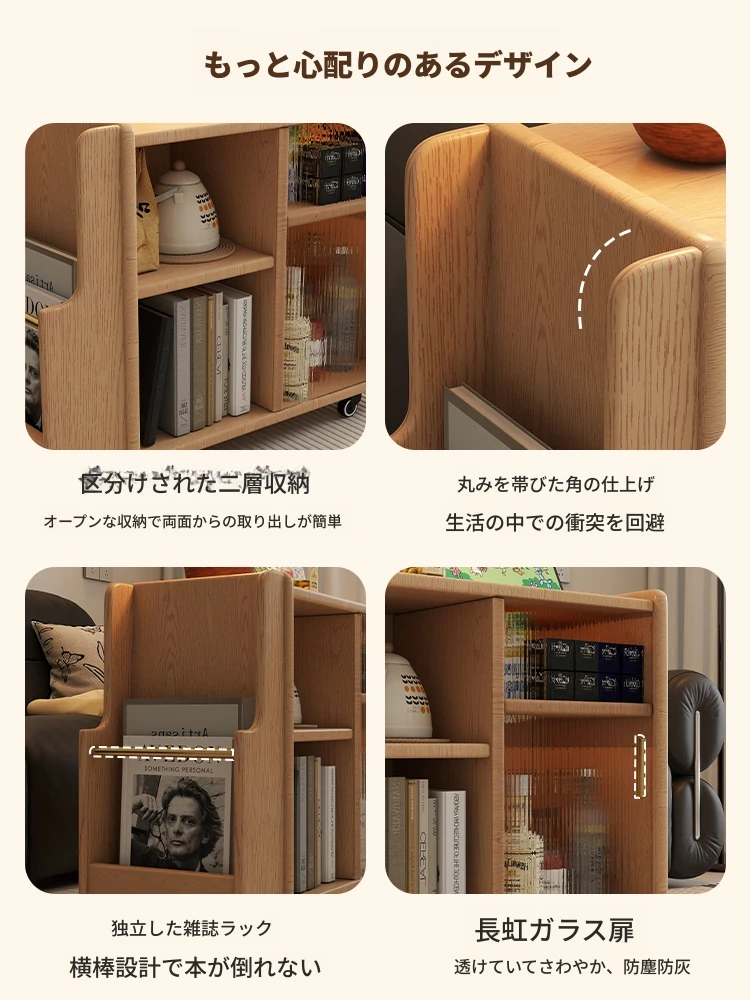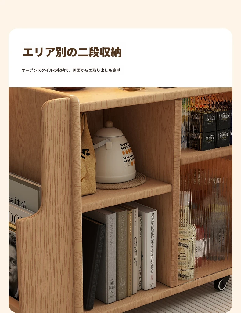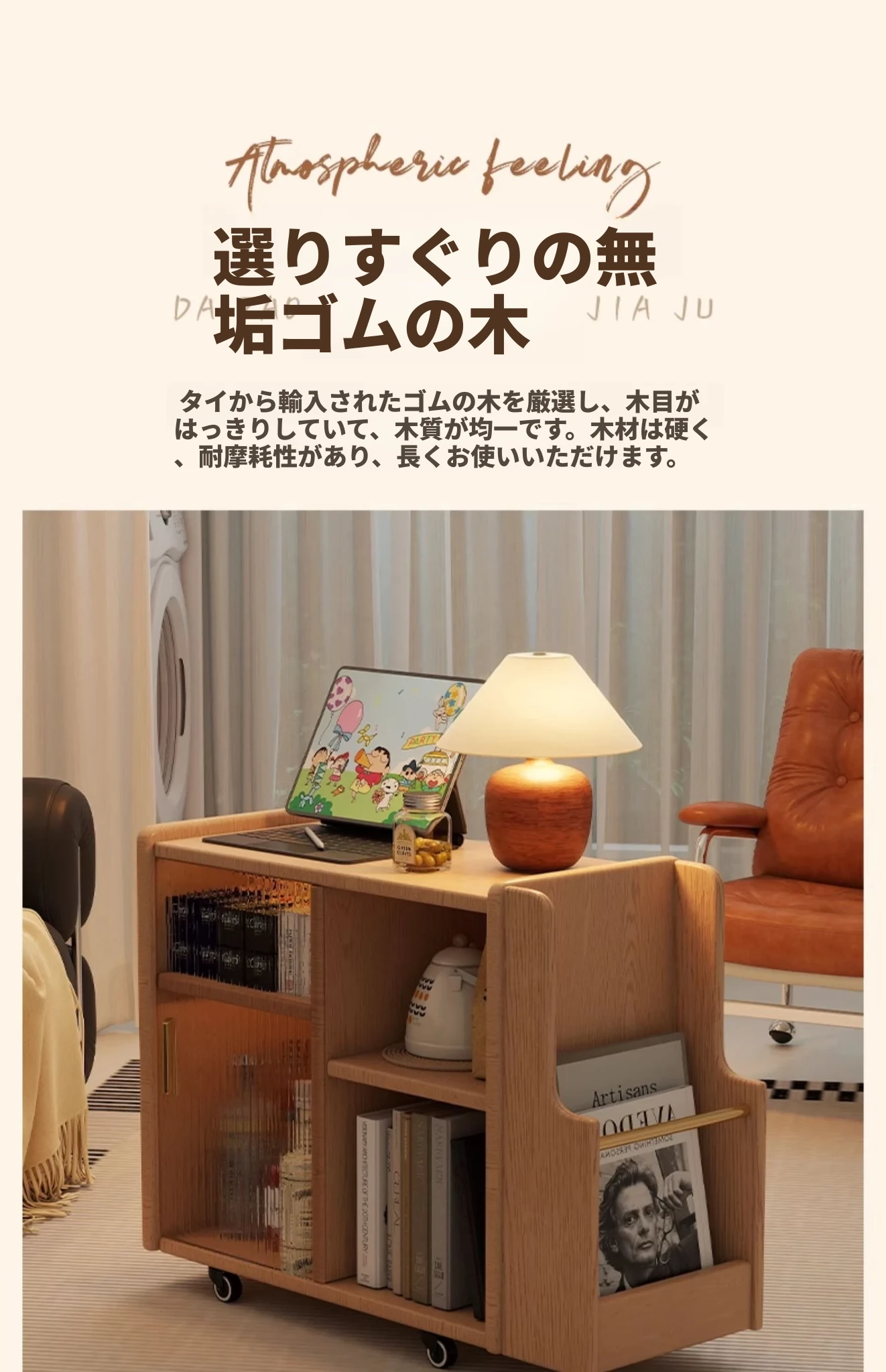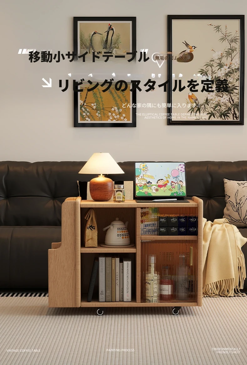 移動可能な北欧スタイルの無垢材サイドテーブル - 家庭用の収納力抜群なおしゃれなスナックラック兼コーヒーテーブル。リビングルームをスタイリッシュに演出!