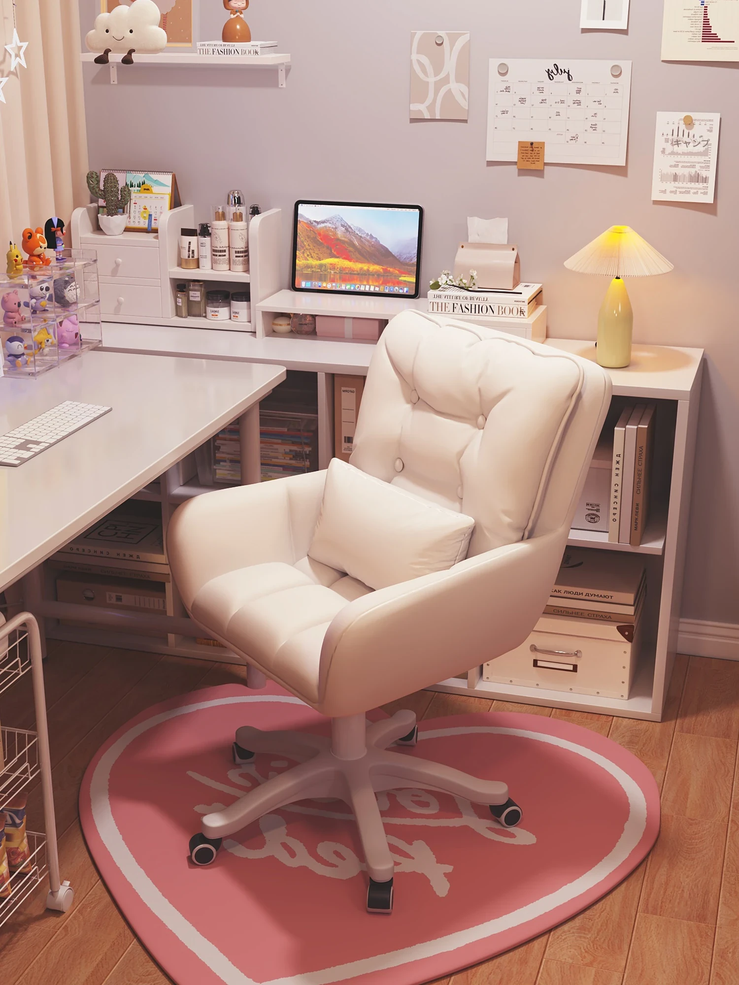 快適な在宅ワークを実現!長時間座っても疲れない、書斎や寝室にぴったりの回転チェア。クリーミーなデザインで、おしゃれなドレッサー椅子や学習用にも最適です。