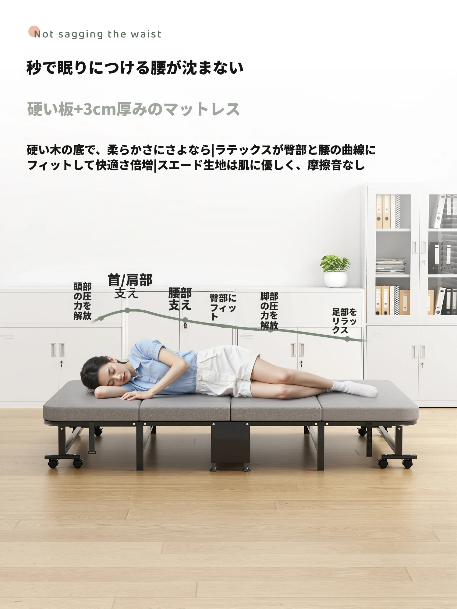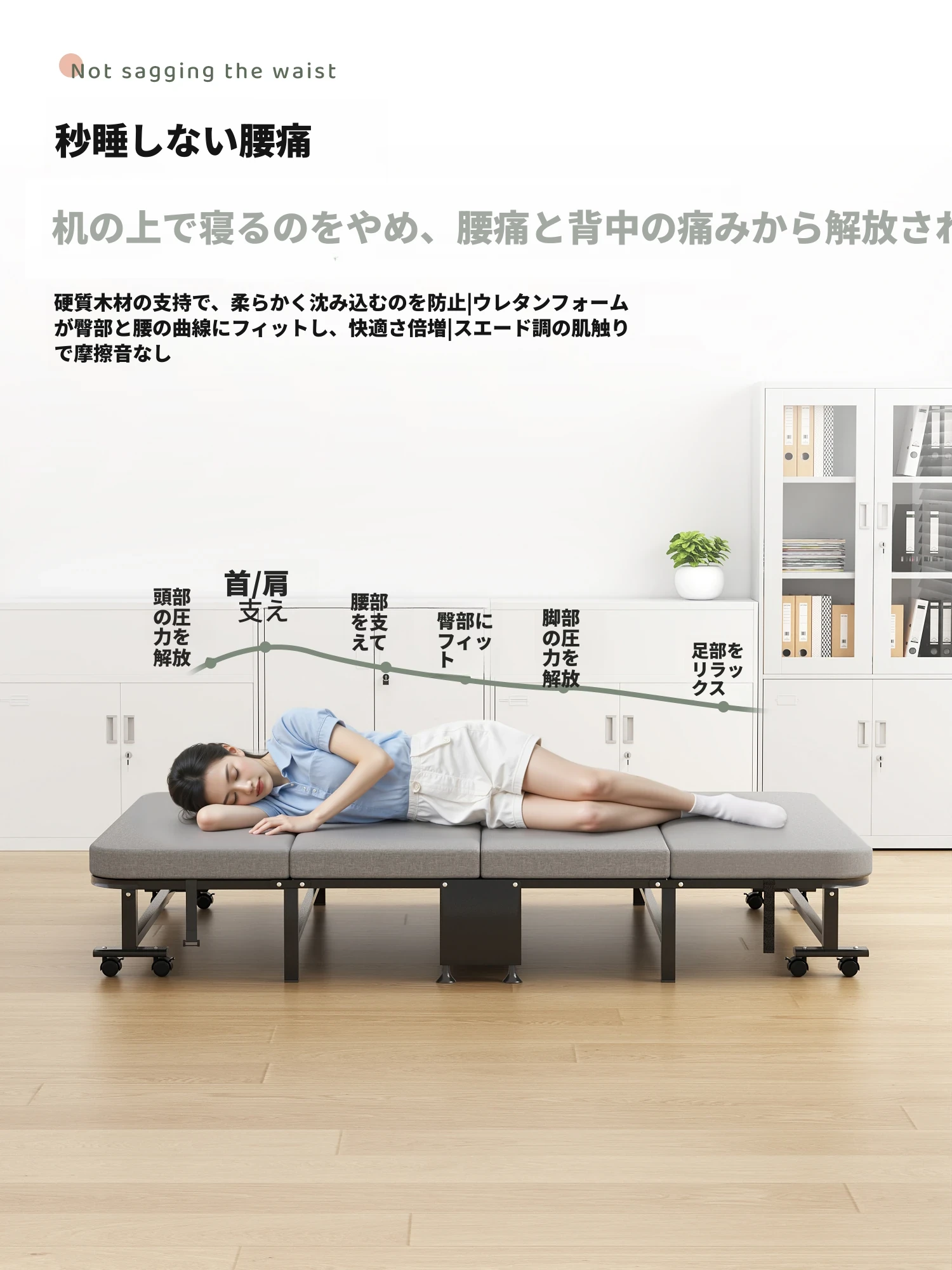 新型オフィス昼寝用折りたたみベッド!快適なシングルベッドで仕事の合間にリフレッシュ。簡単設置、持ち運び便利な革命的な寝椅子!あなたの午後の生産性をアップさせる必須アイテムです。