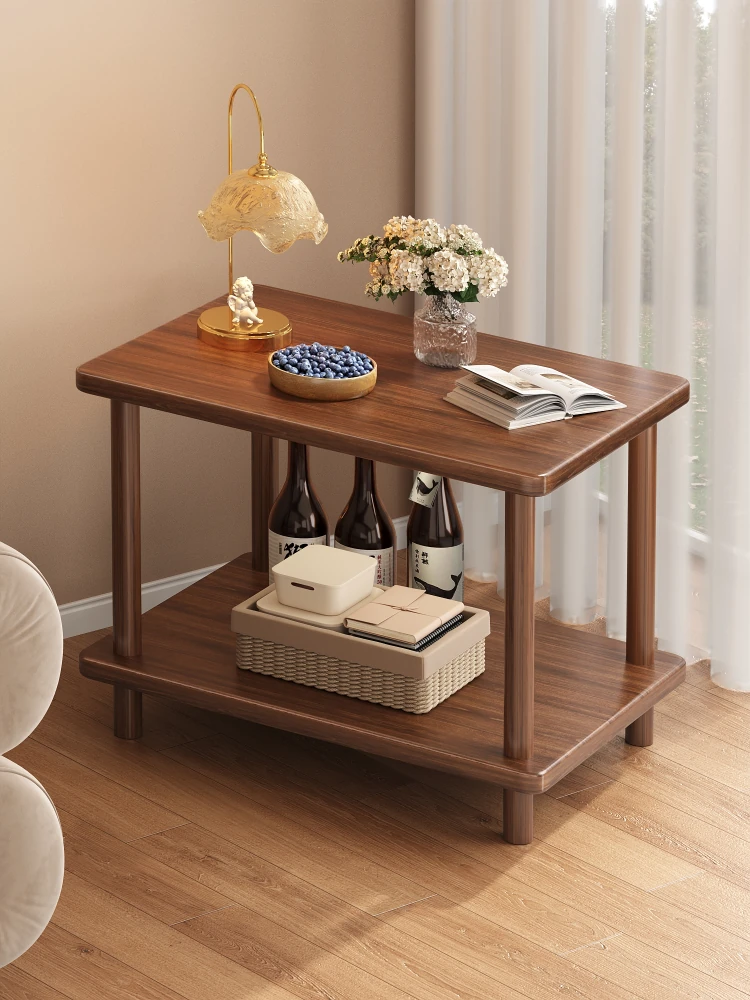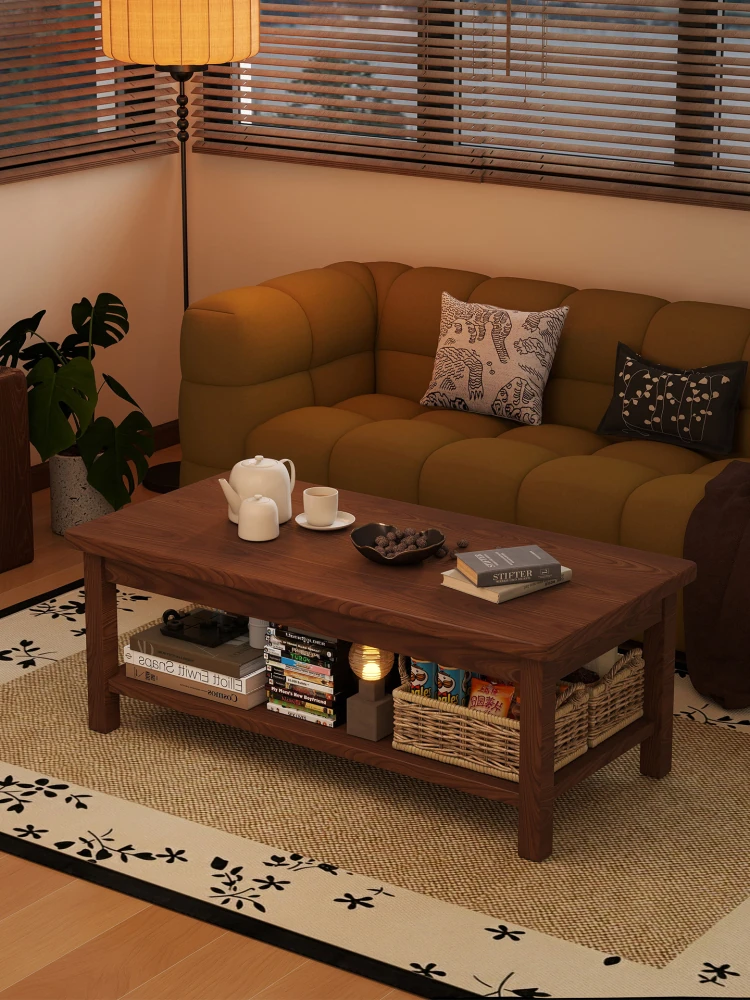 全実木のレトロ風シンプル二段ティーテーブル - 小型リビングに最適なクラシックな中式長方形テーブル!おしゃれで機能的、家族や友人とのくつろぎの時間を演出します。