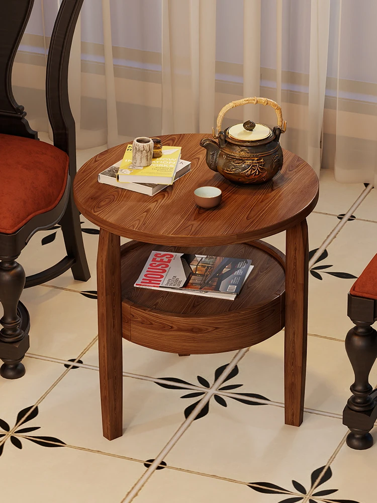 中古風デザインの全実木製サイドテーブル!家のバルコニーやリビングにぴったりの小型テーブル。レトロな円形の角テーブルは、小さなスペースに最適で、スタイリッシュな雰囲気を演出します。収納にも便利なコンパクトサイズ!