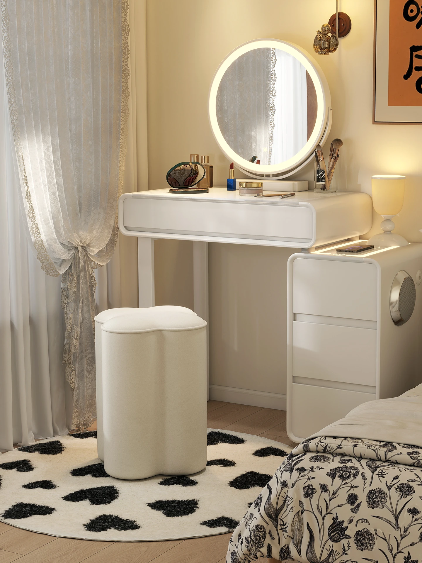 話題のクローバー化粧台椅子!女子の寝室やクローゼットにぴったりのスタイリッシュなデザイン。クリーム風の高級感あふれる化粧椅子で、毎日のビューティータイムを特別なものに!