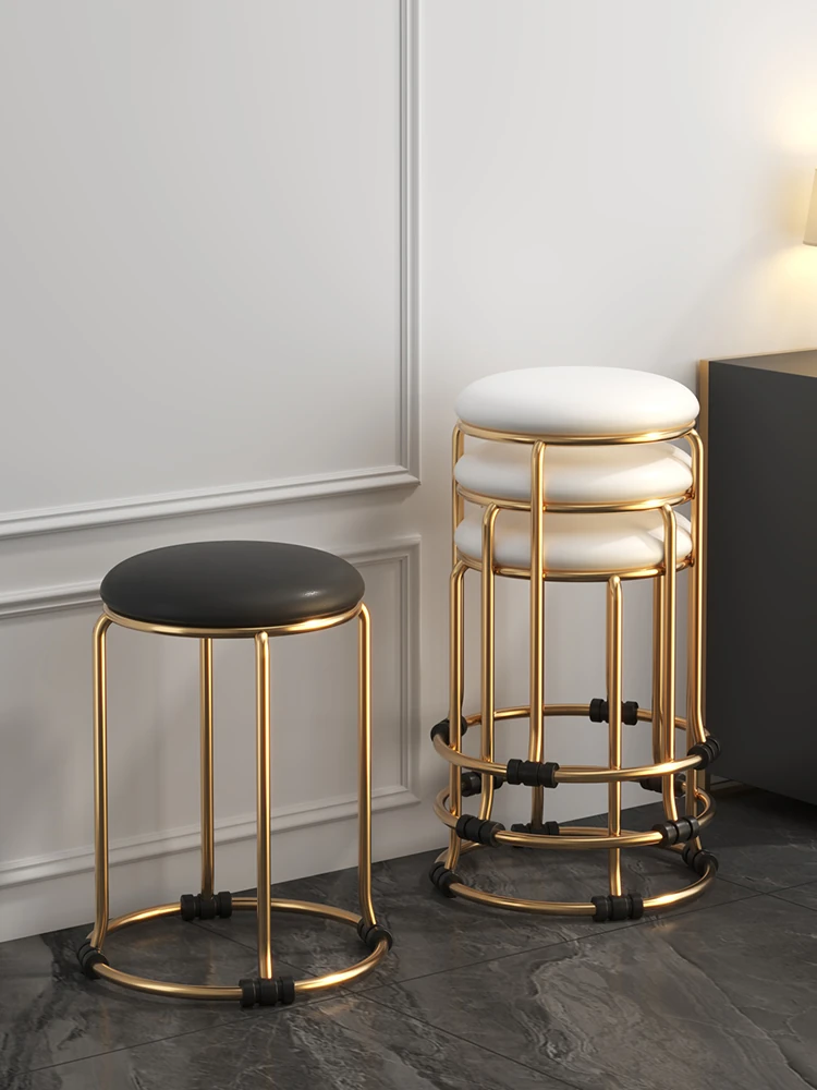 軽やかで高級感溢れる家庭用ダイニングチェア!スタイリッシュな円形デザインの高脚スツール、2023年新作。重ねて収納可能で、ドレッサーや商業用途にも最適です。快適さとエレガンスを兼ね備えた一品!