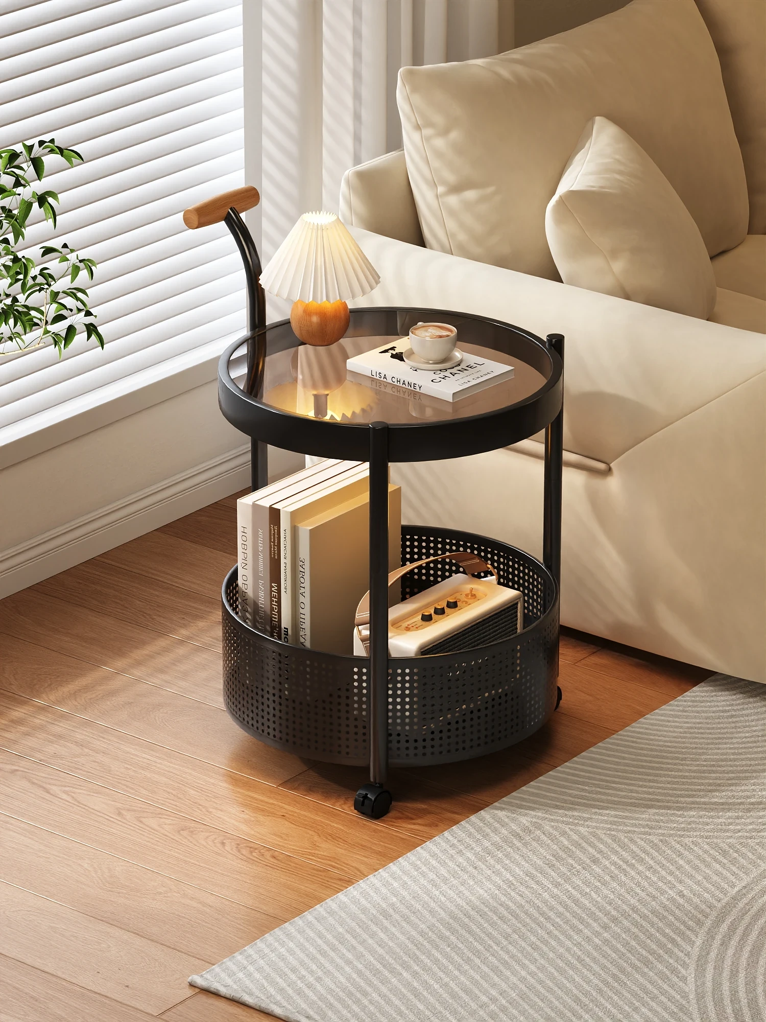 昇降式リビングテーブル!ソファサイドにぴったりな収納小推車。シンプルでスタイリッシュなデザインのサイドテーブル、スペースを有効活用して、整理整頓も簡単!