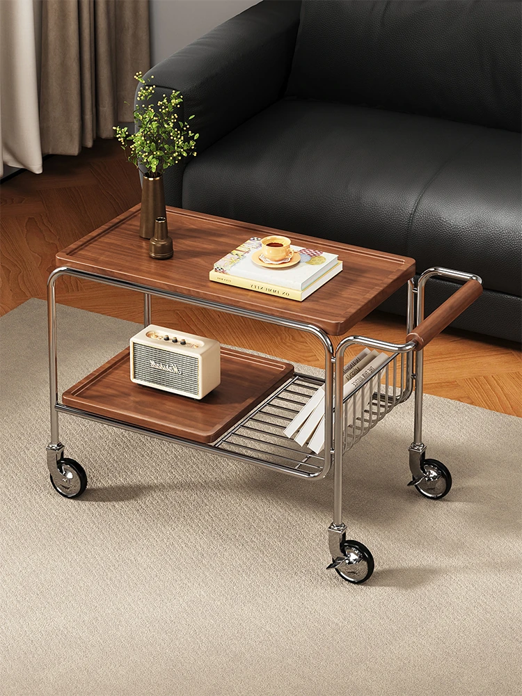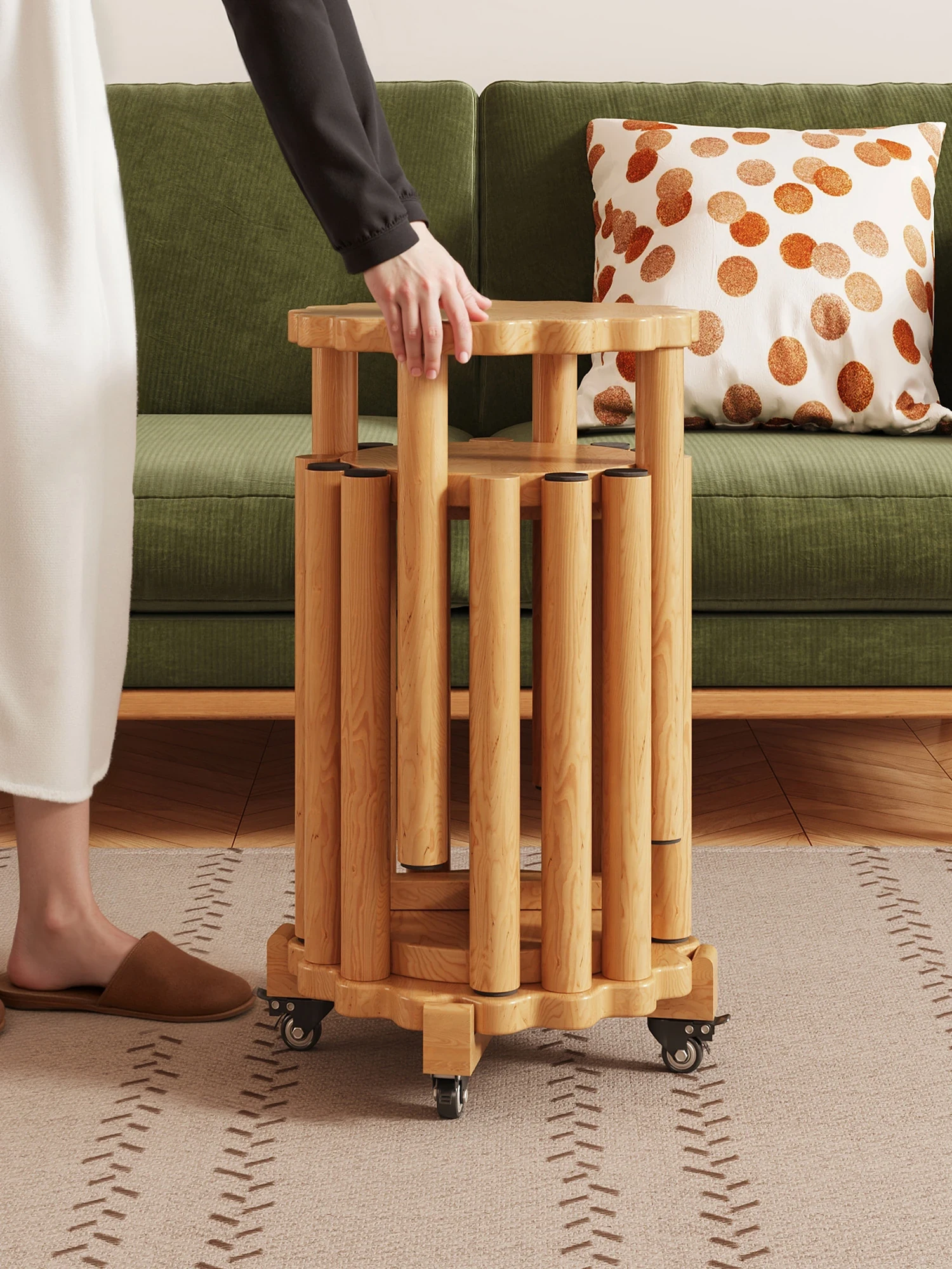 2024年新作!おしゃれな中古風折りたたみテーブル - ソファサイドにぴったり、移動も簡単なレトロ風キャスターワゴンです!お部屋を華やかに彩る実用的な収納ラック。