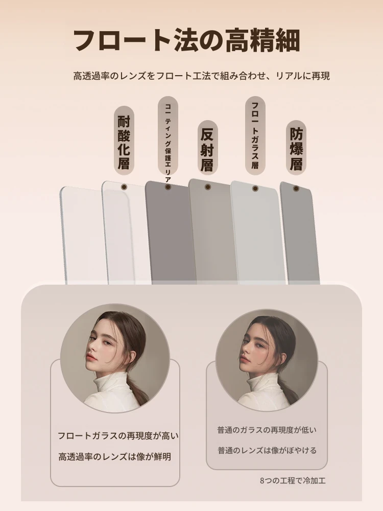 軽やかな高級感を演出する!壁に貼れる自己粘着式バスルームミラー。穴を開けずに簡単に取り付け、洗面所やトイレに最適な化粧鏡。おしゃれなデザインで、毎日の身支度をもっと楽しく!