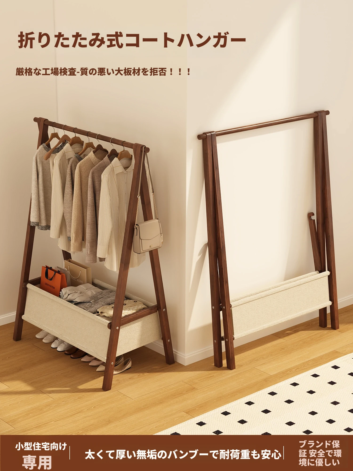 折りたたみ式木製ハンガー - 自宅用のスタイリッシュな衣類ラック!寝室やリビングにぴったりの衣類干し・収納ラックで、スペースを有効活用し、オシャレに整理整頓!