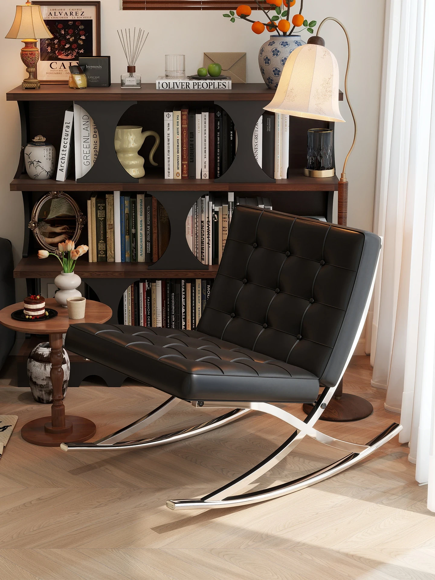 バルセロナ一人用リビングルームロッキングチェア、バルコニー用のリラックスチェア。バウハウススタイルのレトロなデザインで、くつろぎのひとときを提供するソファ!おしゃれで快適、あなたの空間にぴったり!