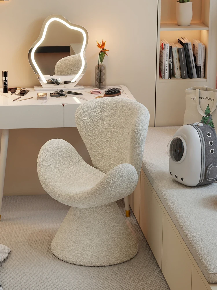 クリエイティブな家庭用メイクアップチェア|360度回転するおしゃれなドレッサーチェア|ネイルチェアとしても最適|高級感あふれる一人掛けリラックスチェア|寝室にぴったりのスタイリッシュなデザイン