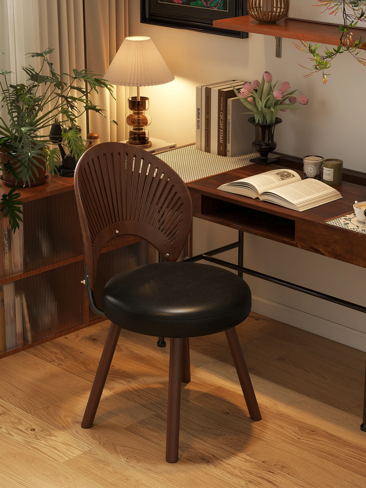 軽やかさと高級感を兼ね備えたレトロデザインの回転式木製パソコンチェア!書斎やデスクに最適、長時間座っても快適な背もたれ付き。寝室にもぴったりなスタイリッシュな椅子!