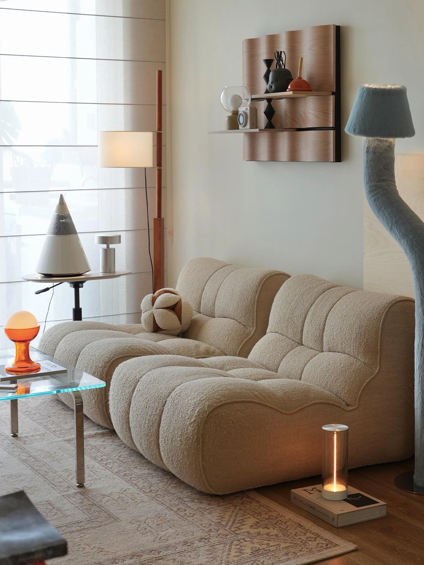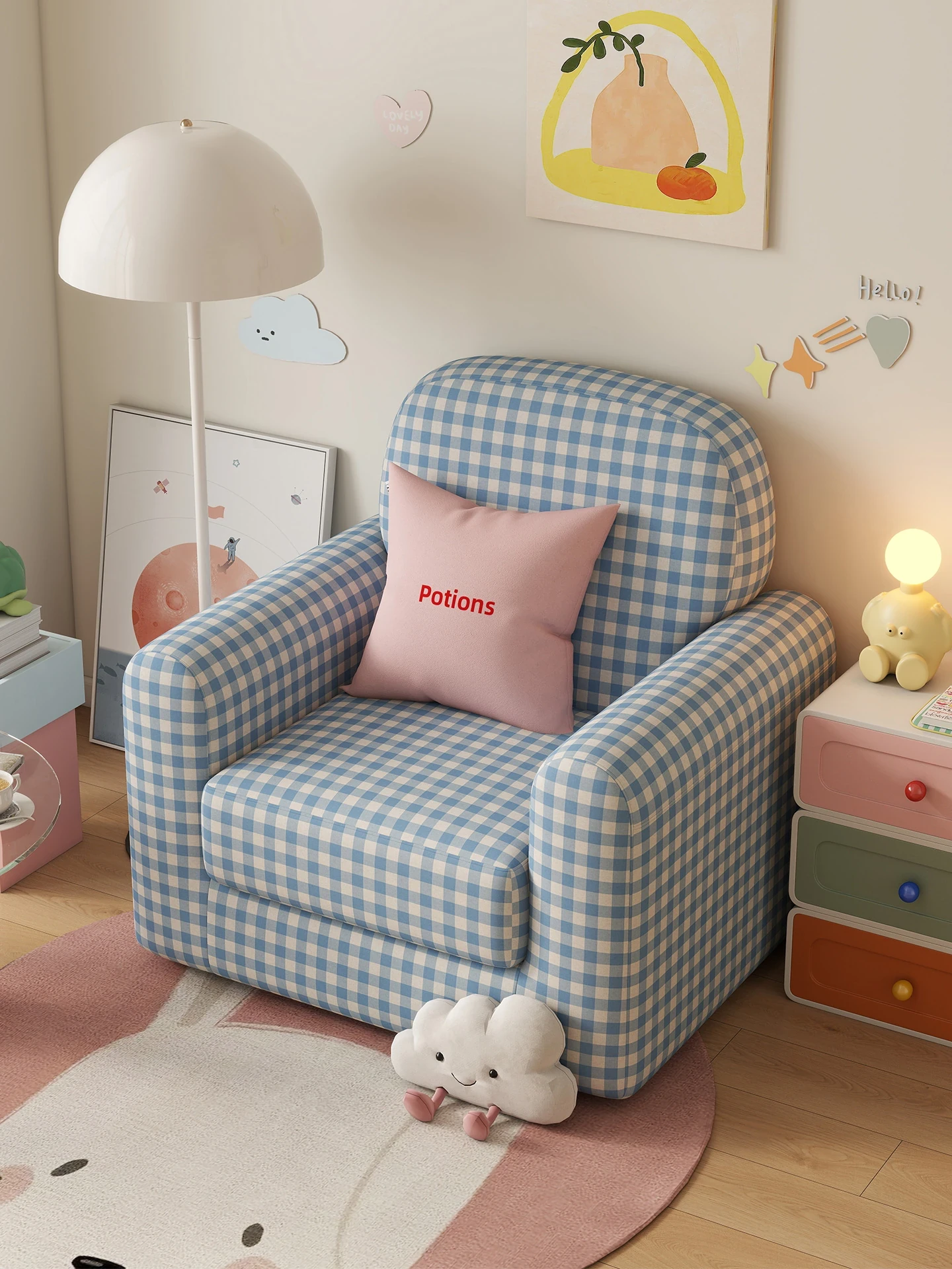 クリーム風ファブリック一人用ソファチェア|おしゃれで快適な小型ソファ|女性の寝室やリビングにぴったり|アパート向け|リラックスできるラウンジソファ